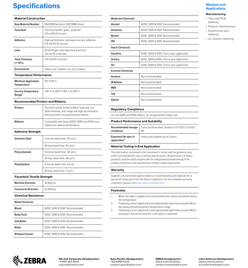 Thermal Transfer Gloss Polyester Label 1" ID, 5" OD Durable, high-performance labeling built for demanding environments. The Zebra Z-Ultimate 300...