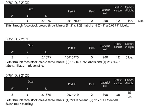 Z-Perform 1000D Label 0.75" ID, 2" OD